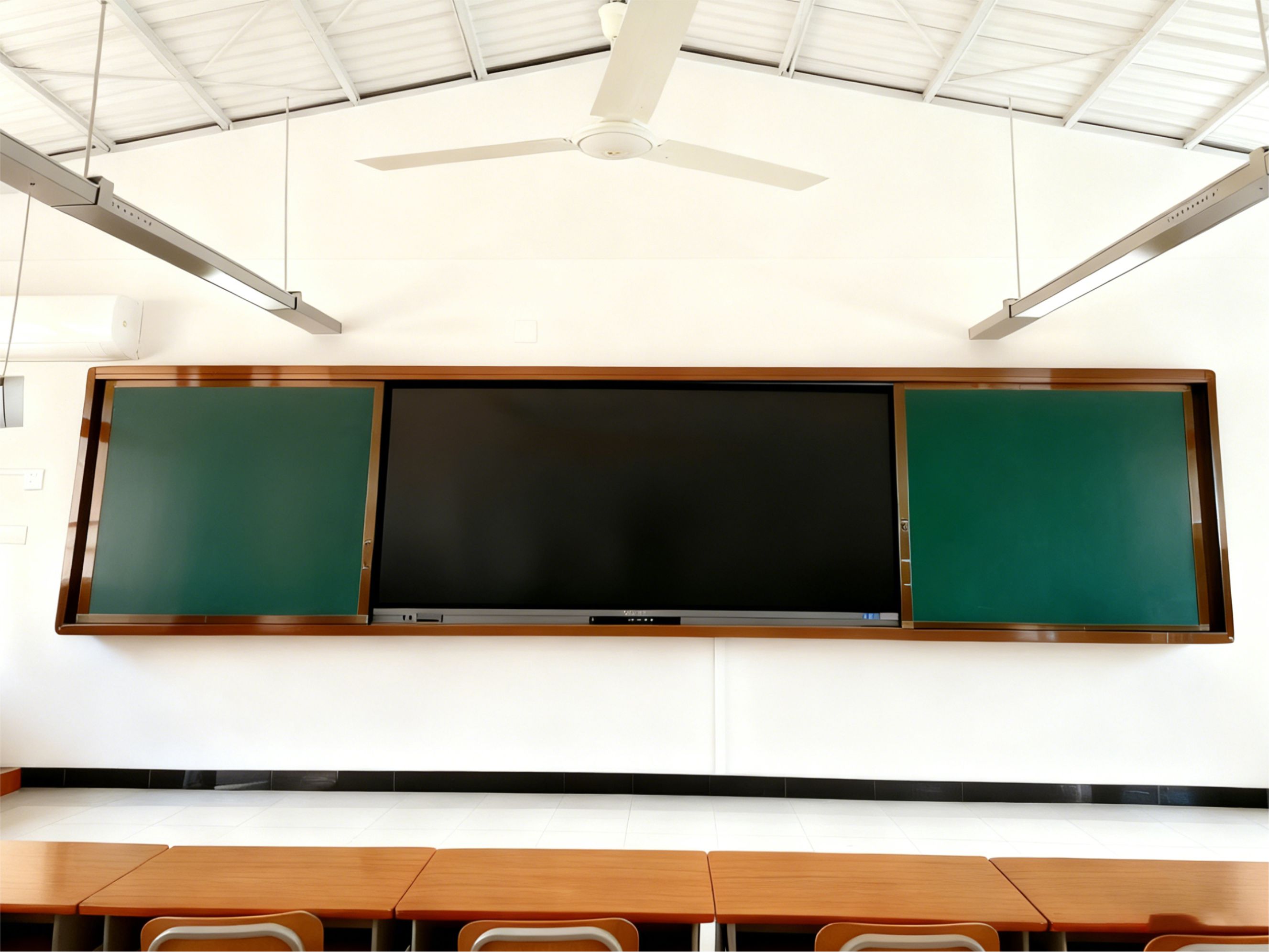 尺寸:200*400、200*420(可定制)面板材质:≥0.3mm金属彩涂烤漆面板边框材质:壁厚≥1.2mm电泳香槟色铝合金框用途:大中专院校多媒体阶梯教室或大型培训机构